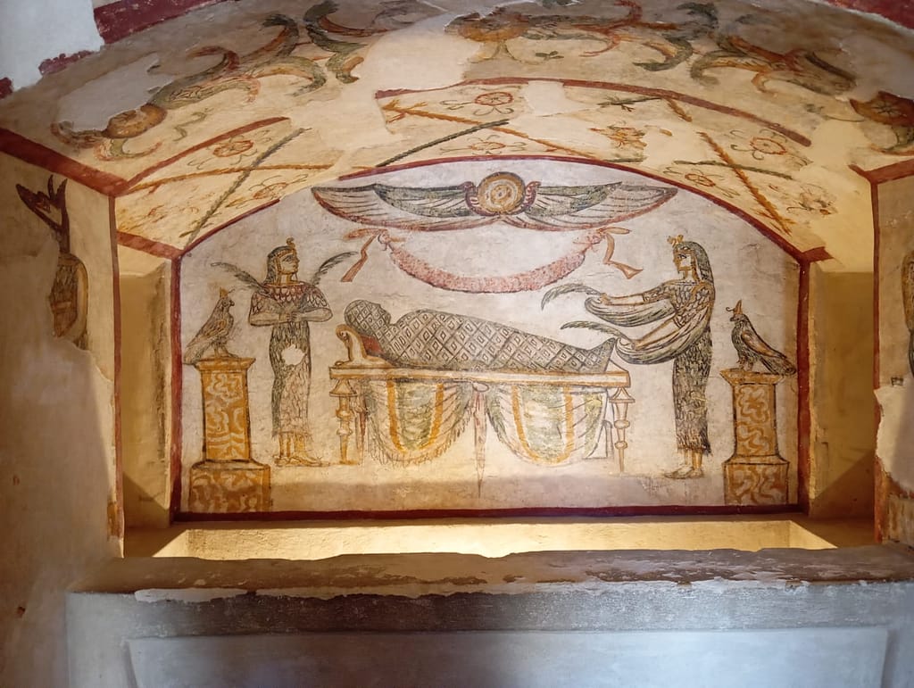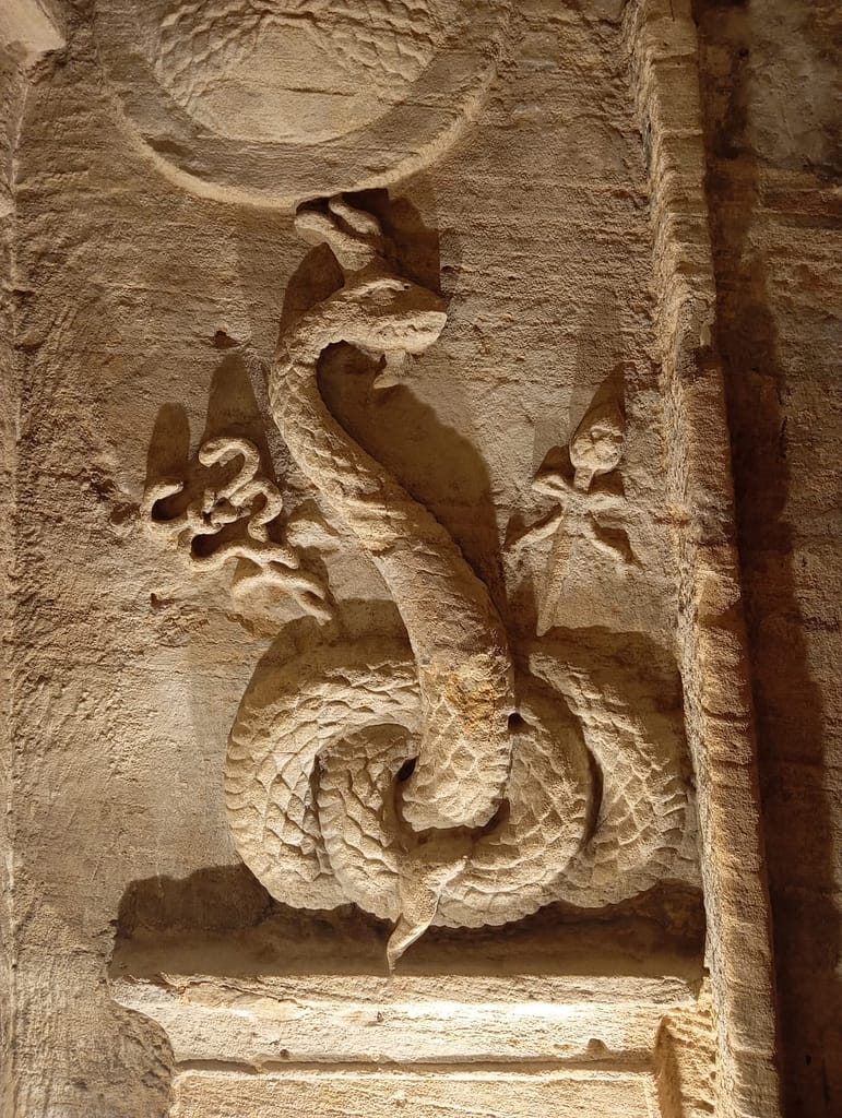- Catacombs: The catacombs were underground with a spiral staircase around a well. The rooms below had provision to store hundreds of mortal remains of humans and animals in historic times