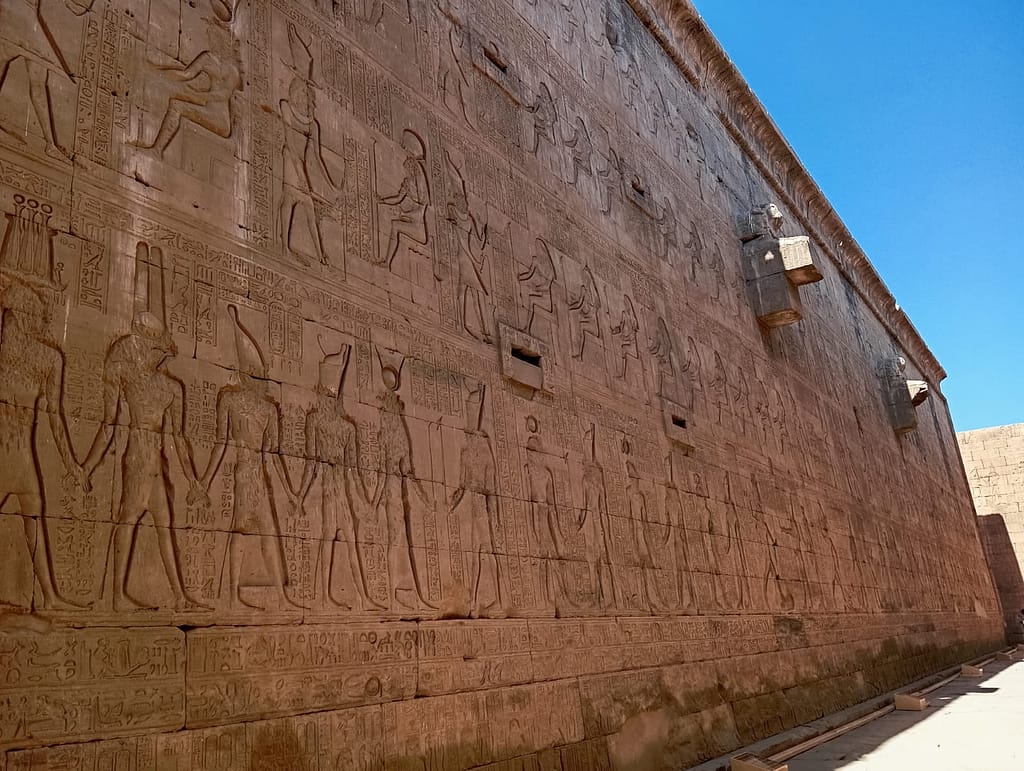 Edfu- One of the best preserved temples with lot of designs on the outer walls. Architecture is similar to Dendera temple, but core temple is a bit smaller. Dedicated to the eagle faced god Horus, husband of Hathor to whom the temple of Dendera is dedicated to. Entry 450 LE/ $9