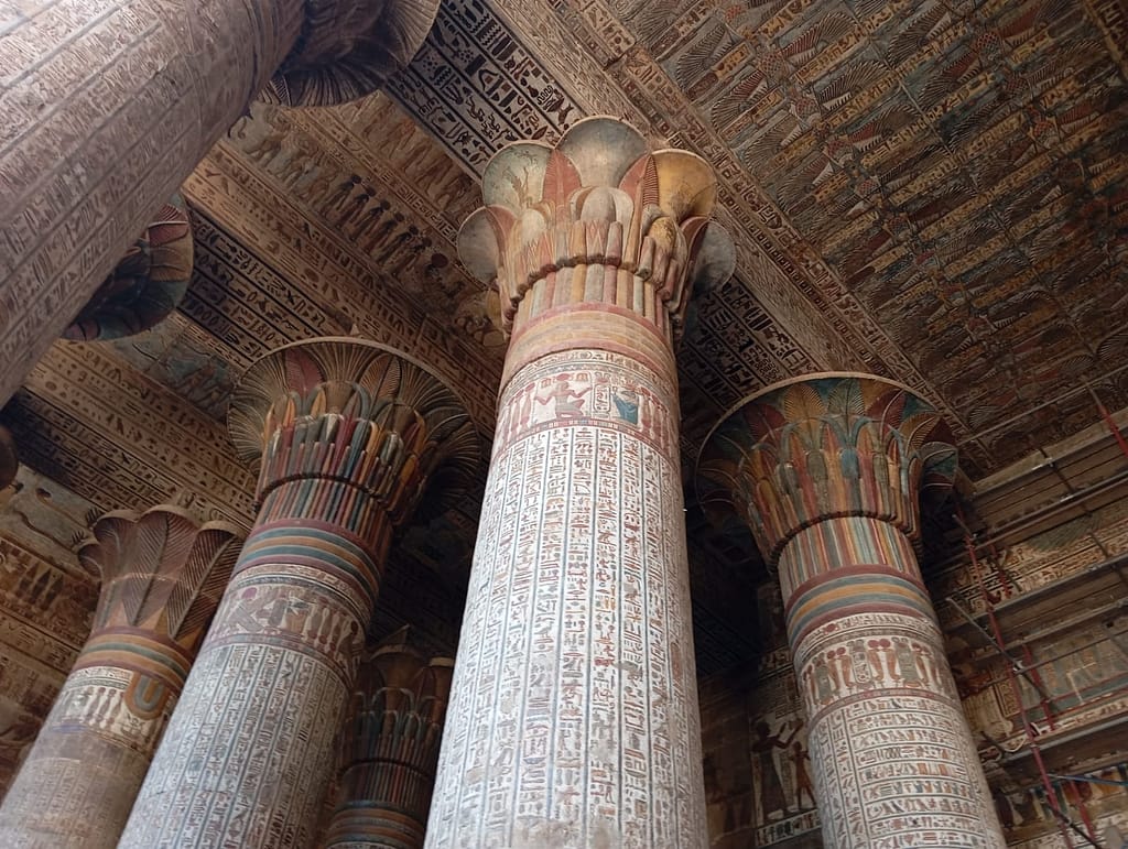 Abydos temple of Seti I is one of the oldest dating 1300 BC. It has large reliefs on the walls and huge pillars which make it unique. There is an inscription of all the kings of Egypt on one of the walls