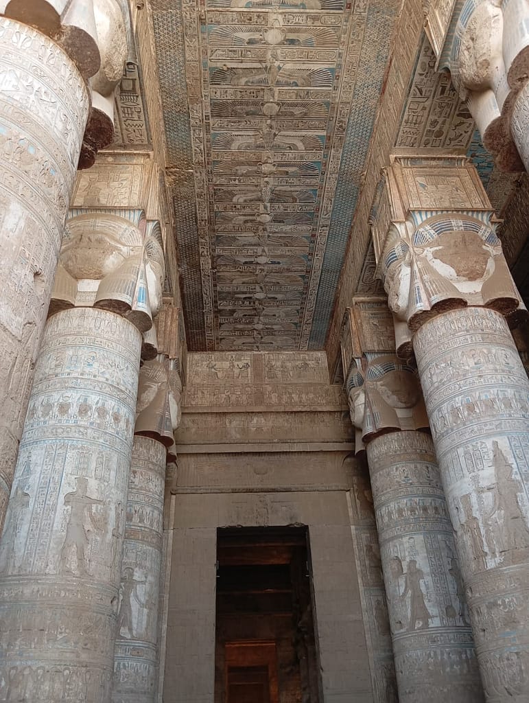 Dendera is about 1.5-2 hrs away from Luxor and Abydos about 3 hours away. Dendera temple was the most interesting one among all the temples in Egypt. It had ornate work on its walls with blue colored reliefs on overhead walls. It is multistoried, where you can walk on the roof of the temple. There are many rooms with temporary ladders to get a glimpse of the architecture although there is not much inside the rooms