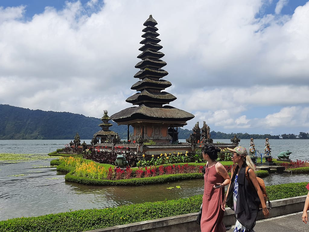 Ulun Danu Beratan is a picturesque temple beside lake shore. It gives a calm feeling to be here and spend time around the temple. The mountains, clouds and water give a beautiful background to the temple. You can see birds like eagles and owls behind the temple, more for photo ops. Many locals come here for religious functions