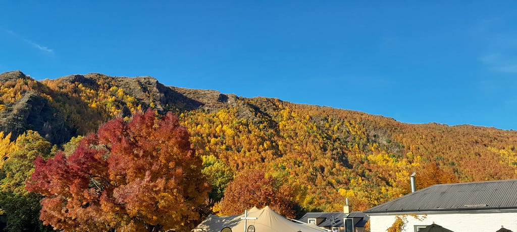 Queenstown is a cute town with a nice lake and colorful trees. The gondola ride to Bob Peak gives you a good view of the town