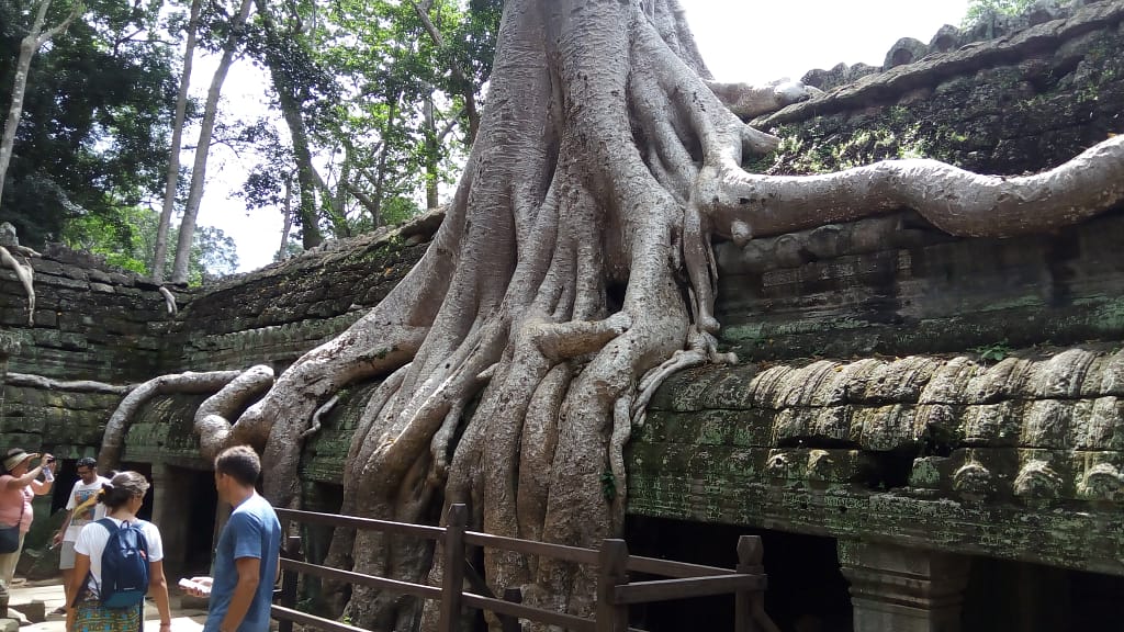 You can see tree roots hugging and holding temple bricks very closely. They form a nice network of support