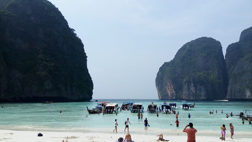 Maya bay was serene with white sand, blue waters and karst mountains around. It keeps getting closed for restoration often