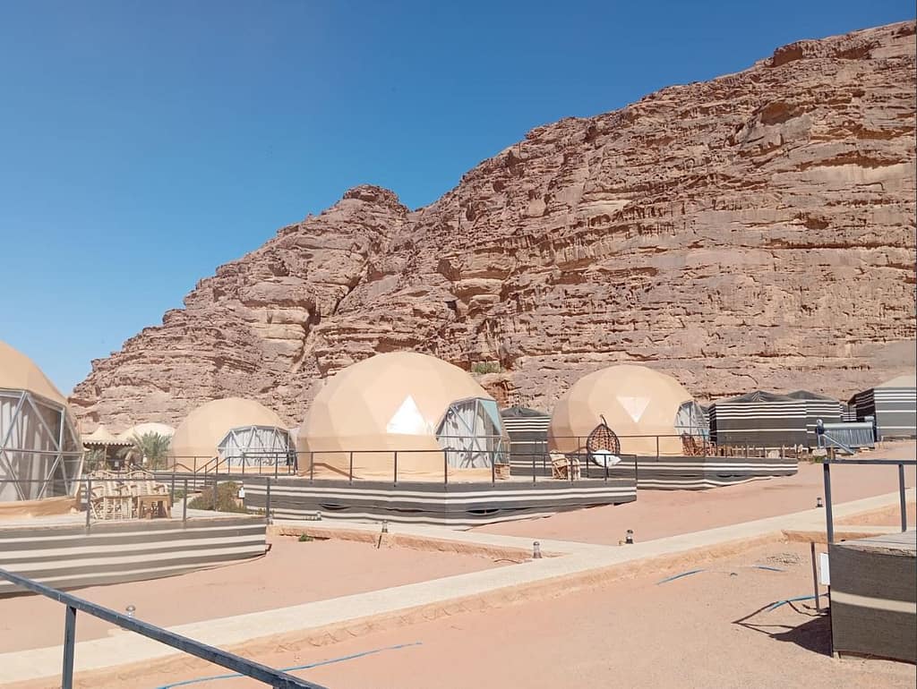 The camp was clean with decent vegetarian options The overall package including food and jeep tour was 213 JOD for 3 people. Most camps quote a very low room price and charge add-ons like jeep tour at extensive rates, ending up at similar rates overall. In the evening, there was an equivalent of bonfire, some local dance and very good lighting of rocks bordering the camp
